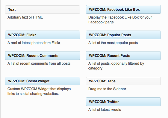 Custom WidgetsMake use of the custom sidebar widgets, including: Flickr Gallery, Popular Posts.All of our themes come packaged with an easy-to-use Theme Options Panel